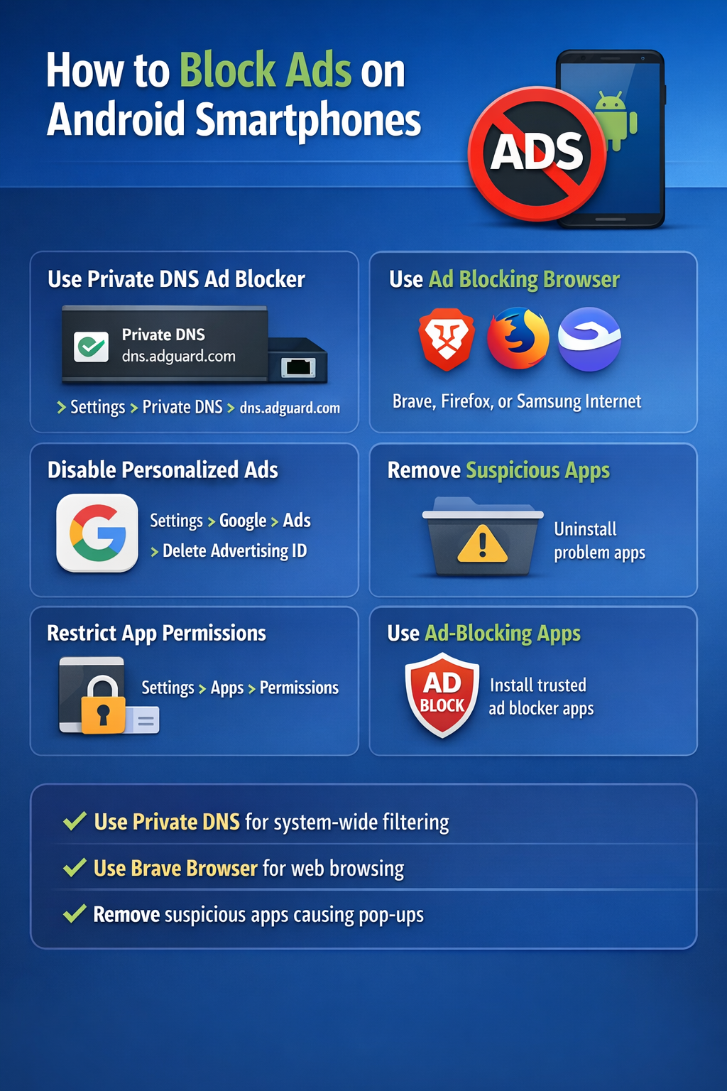 You can reduce or block ads on Android in a few practical ways: